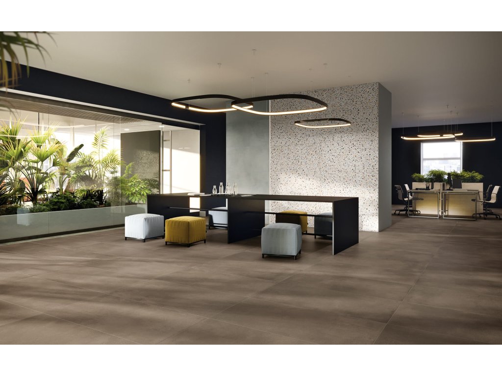 Povrch dlaždic má jemnou betonovou strukturu a elegantní matný vzhled, který se skvěle hodí do obytných i komerčních prostor. Díky široké škále rektifikovaných formátů (např. 60×60, 60×120, 80×80 cm) a neutrálním barvám – od světlé bílé a šedé po tmavší antracit – lze dlažbu snadno kombinovat s dalšími materiály, jako je dřevo, kov nebo sklo.