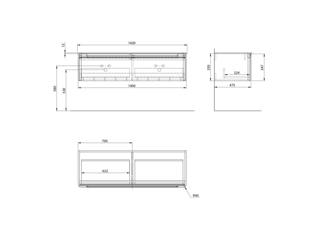 KERALA umyvadlová skříňka 140x35x47,5cm, 1x zásuvka, carina