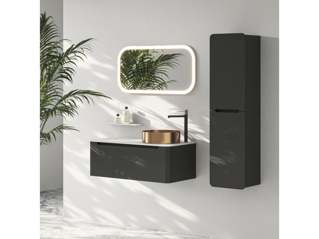 Součástí série je také vysoká skříň ve stejném zaobleném designu – ideální pro uložení doplňků a textilu. KERALA je stylová volba pro každou moderní koupelnu, kde chcete skloubit praktičnost s čistým designem.