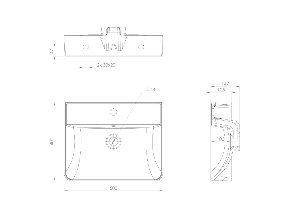KVANTA umyvadlo, litý mramor, 50x40cm, bílá