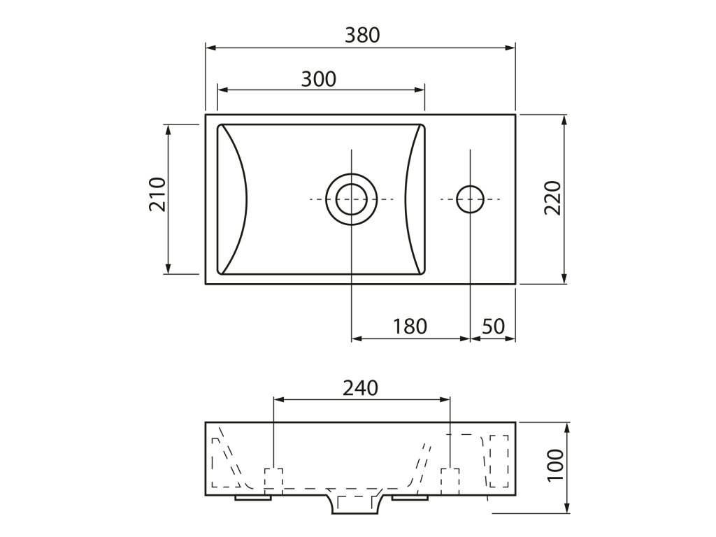 MARGITHA keramické umývátko 38x22cm, otvor pro baterii vpravo, ivory