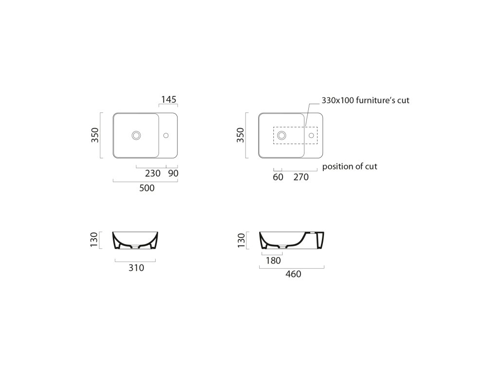 MODO keramické umyvadlo na desku 50x35cm, bez otvoru, bílá ExtraGlaze