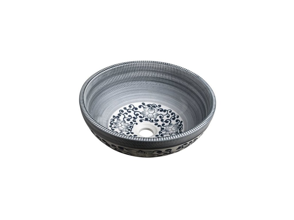 PRIORI keramické umyvadlo na desku, průměr 41 cm, modrá se vzorem