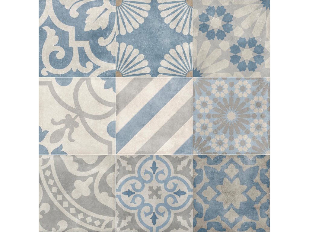 Dlaždice jsou vyrobeny z odolného gres porcellanato, což zajišťuje jejich vysokou technickou odolnost, a zároveň mají matný povrch, který dodává vzorům hloubku a vintage kouzlo. Barevná paleta je laděná do přírodních, prašných tónů – od pískových, šedých až po jemné modré či terakotové odstíny. Díky tomu se hodí jak do tradičních rustikálních interiérů, tak i do moderních prostor s historizujícím akcentem.