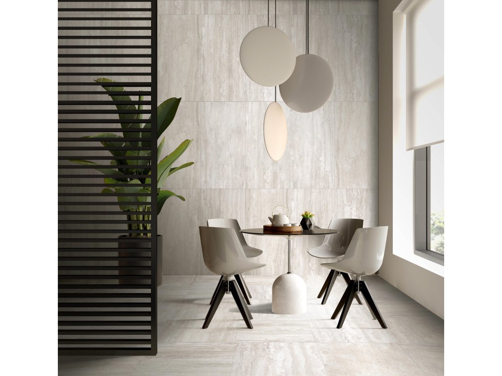 Obklady a dlažby Travertine jsou k dispozici v několika formátech – od 30 × 60 cm až po 60 × 120 cm, a ve třech elegantních odstínech: Bone, Silver a Cream. Kolekci doplňují také 3D dekorativní prvky Lineal a protiskluzová varianta R11, vhodná pro exteriéry či mokré prostory.
